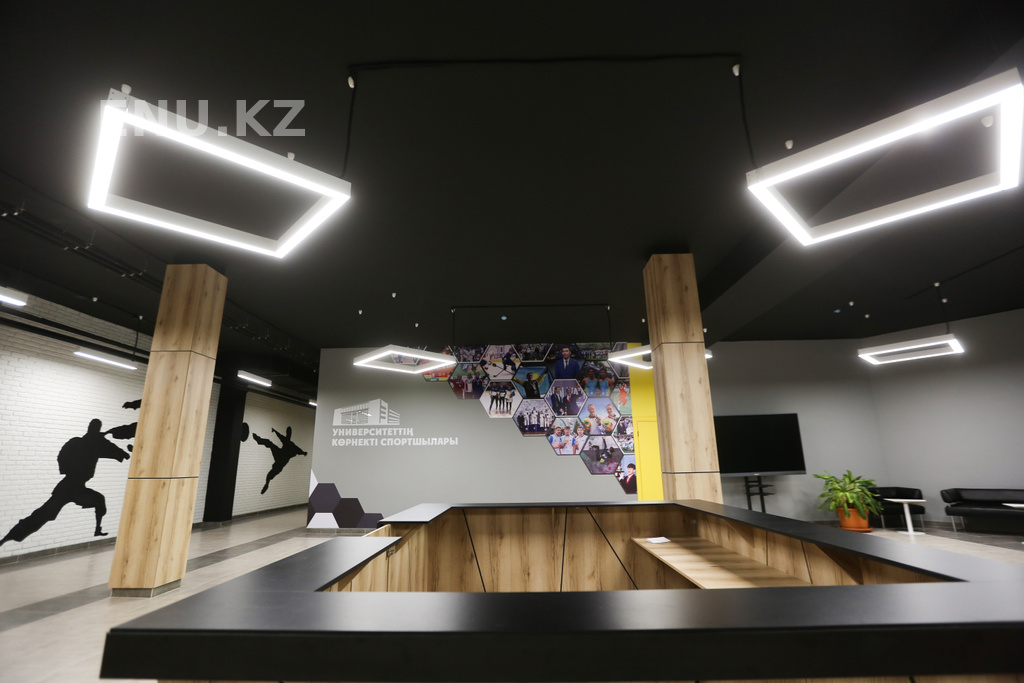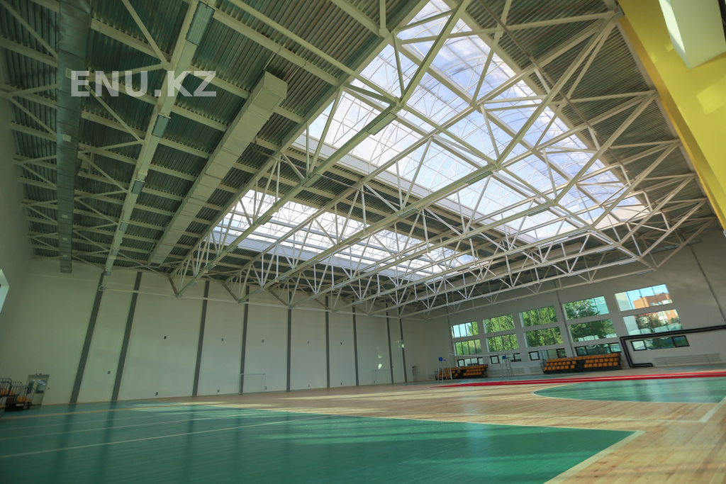 The building of the complex consists of four floors, on the ground floor there are two football, one basketball and four volleyball courts, on the second – men's and women's locker rooms, on the third – men's and women's gym, boxing gym, sports rooms for playing chess, as well as national sports like togyzkumalak, asyk atu and bes tas, on the fourth floor there is a tennis hall, a gym for shaping and dancing. It is planned to open a climbing wall soon.